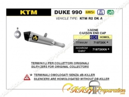Voici le silencieux X-KONE de la marque renommée ARROW spécialement conçu pour votre KTM DUKE 990 à partir de 2024.