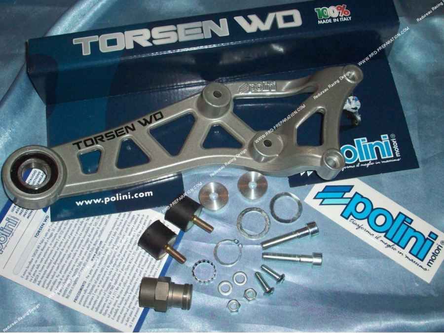 Avec la naissance de cette pièce de qualité, POLINI a placé la barre très haut! S’inspirant des fourches compétition du MOTOGP, le TORSEN WD pour tout moteurs minarelli vertical MBK / YAMAHA permettra de durcir le carter moteur en évitant des torsions qui sur de gros moteurs peuvent aller jusqu’à la rupture du carter moteur. Qu’est-ce que va vous apporter le TORSEN WD POLINI? Solidité du moteur et tenue de route accrue, le tout avec un design sobre, ultra racing et un poids plume.