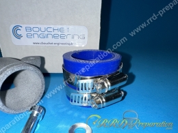 Pipe d’admission de compétition C. BOUCHET imprimée en 3D dans une matière spécifique résistant très bien à la chaleur! Cette pipe permet la pose des gros carburateurs PWK KEIHIN ou copie comme les PWK POLIN ainsi que les DELLORTO VHST. Pour une carburation Ø24 à 28mm idéalement. La pipe, conçue par un motoriste, est évidemment étudiée pour un maximum de performances. Elle est livrée avec un manchon souple anti vibration résistant au hydrocarbures, ses deux colliers et sa visserie! Une très belle pièce, indispensable pour les grosses configurations moteur de PEUGEOT FOX! Un avantage du montage souple et de l'imprimé 3D, c'est la coupure thermique entre le carburateur et le moteur pour le pas réchauffer le mélange gazeux dans le carburateur.