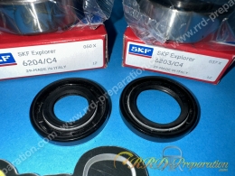 Voici un kit de roulements de vilebrequin SKF, ces roulements de qualité sont solide, ils disposent d'une cage acier riveté et d'un jeu de C4 + C3, ce pack contient aussi 2 joints spi en nitrile haute qualité!