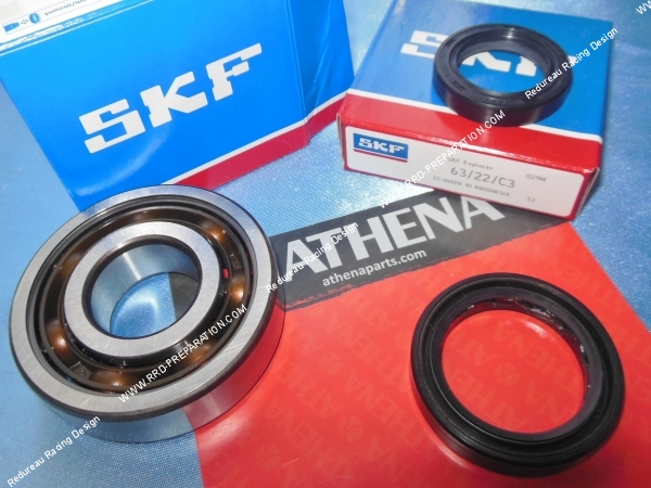 Un jeu de roulements ATHENA Racing tailles origine Ø25mm avec joint spi, spécial moteur très puissant et haute vitesse! Ce pack est muni de 2 roulements SKF Racing en cage TN9 (polyamide) anti-vibration et anti-frein moteur, la cage a été étudiée pour un meilleur graissage et une meilleure résistance.