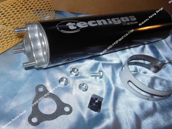 D'excellente qualité de chez TECNIGAS. Voici le silencieux en aluminium noir pour échappement version NEXT-R homologué sur scooter. Livré comme présenté avec sa bride, son collier de fixation, visserie,  joint et 3 écrous.