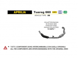 Voici la ligne complète d'échappement (collecteur + silencieux) de chez ARROW pour vos motos APRILIA TUAREG 660 2022