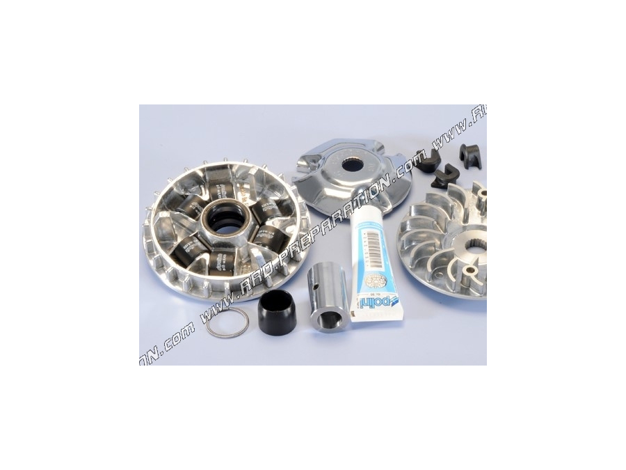 Votre maxi-scooter manque de performance? POLINI a créé ce variateur HI SPEED qui donnera une montée en régime beaucoup plus souple et performante que l'origine, mais aussi un maximum de couple et une vitesse de pointe plus élevée. Alliant solidité et longévité, ce variateur est de très bonne qualité et simple de montage n'altérant en rien la solidité de votre maxi-scooter. Grâce à lui, finit les accélérations molles et lentes! Il est livré avec une joue fixe ventilée améliorée! S'adaptant sur différents modèles (voir liste ci-dessous), il est livré avec 1 canon, 1 joue mobile, une joue fixe, une cale, 1 jeu de galets bien étudié permettant un réglage optimal et ce peu importe si le moteur est coupleux ou puissant ainsi qu'un tube de graisse pour éviter le grippage de la joue mobile. Encore une fois, POLINI s'investit pour nous faire partager ses créations qui nous donne du plaisir. Livré complet avec notice.